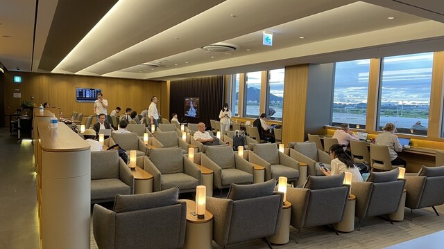 ラウンジから見える外の景色はとても美しく、もうすぐ韓国を離れるんだーと少し寂しい思いにもなります。ラウンジ内は綺麗で、席間が狭いこともあり結構な人が入れます。