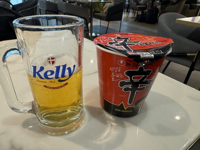 朝9時発のアシアナで成田まで。アシアナラウンジは洋風なものばかりなので、私と娘はプライオリティパスの使えるSky Hubへ。ここのほうがご飯が充実しているのでね。朝ビー飲みつつ自分で盛り付けるビビンバ...