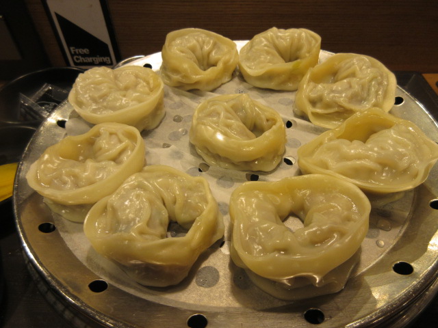 友人がビールのつまみに頼んだ肉入り蒸し餃子、5500W。