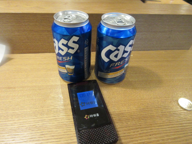 飲み物の缶ビール2000Wをレジで受け取ったらベルを貰ってテーブルで待ちました。