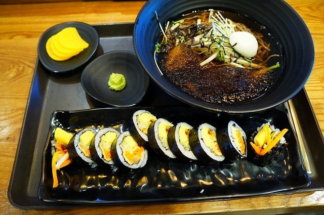 日本の蕎麦と韓国の冷麺の両方をイメージする麺類の、...