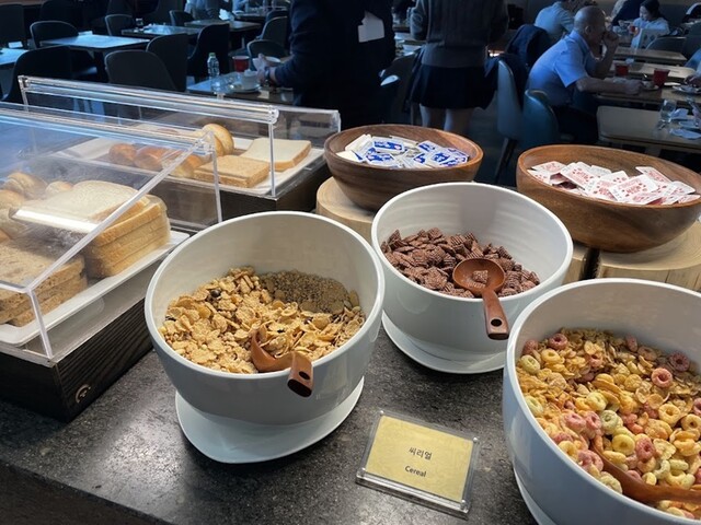 出国審査ゲートの真正面にあるアシアナ航空のラウンジ。一般的なラウンジの食べ物に加え、辛ラーメンなどのカップ麺を食べることができます。この日は4時起き、始発の地下鉄からA’REXを乗り継いできたので、こちらで朝食を摂りました。3階の喧騒とは違い、静かで混み合うこともなく、出発前のひと時をゆっくり過ごすことができました。