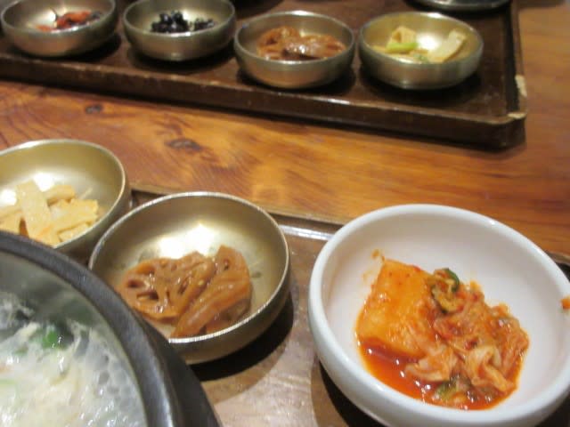 暫く待つと注文したプゴクッ定食10000wの出来上がりです。 鱈を使った味噌汁みたいなスープの定食、韓国では二日酔いの時に食べると効果があると言われてるみたいです。