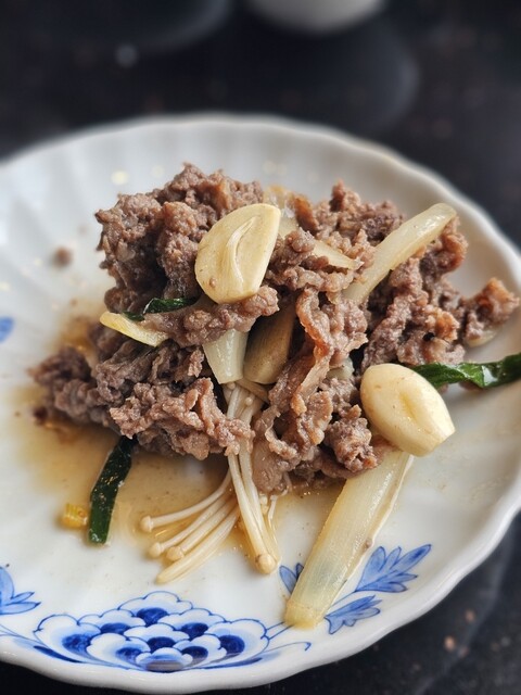 にんにくをマシマシにしてもらったチャプチェがええあてでした。