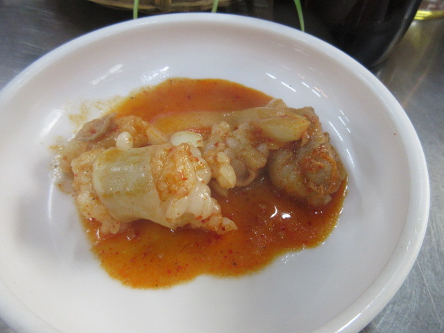焼けたホルモンは韓国らしく野菜に包みいただきました。