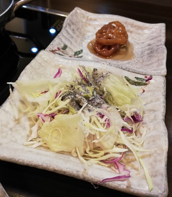 胡麻ドレッシングサラダでした。奥は蓮根のきんぴらっぽいおかずでした。