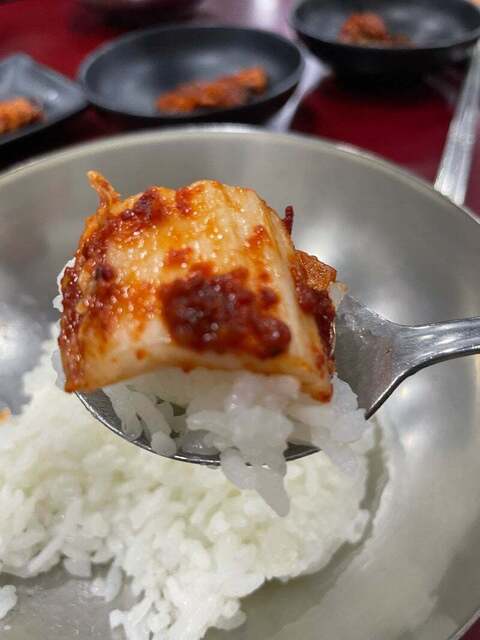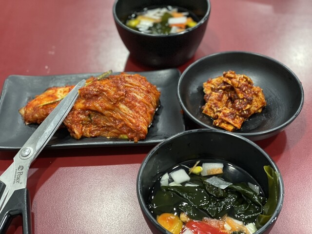 買いに来ると食べたくなるから7000₩出してスンドゥブも頼んで、キムチを食べまくるww