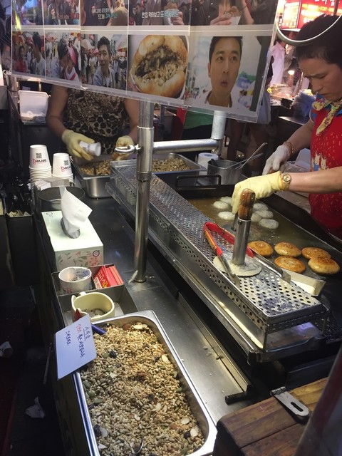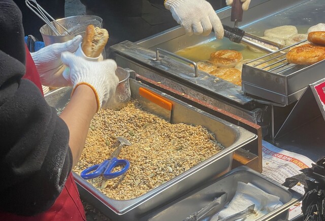 釜山はナッツが入ってるのが定番、ソウルでは食べられないので韓国旅行者も並んで買ってます。