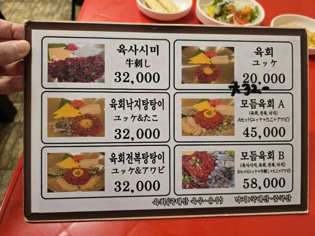 この日は「生センマイ&生レバー(13,000ウォン)」と、「ユッケ&生タコ&アワビ盛り(38,000ウォン)」を注文。