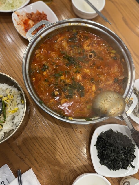 魚介が豊富に入った釜山名物で、テナガダコ、エビ、ホルモンが入っています。労働...
