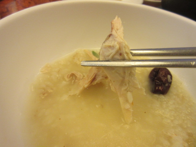 参鶏湯はスプーンをいれるとじっくりと煮込まれたお肉は柔らかくすぐにお肉がくずれてとても食べ易かったです。