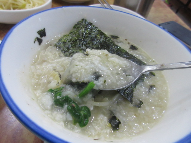 朝食に選んだのはあわびのお粥15000W、日本語表示があるのも嬉しいですね。