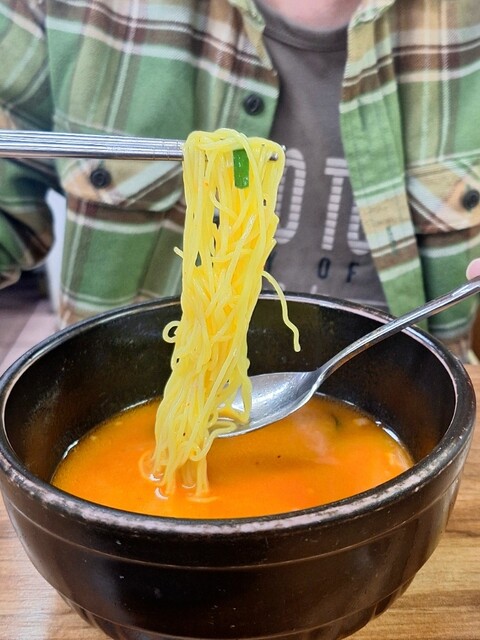 食べ方は自由ですが、一般的におかずで出てくるニラやニンニク、麺をスープの中に入れ、セウジョッ(アミエビの塩辛)で塩加減を少しずつ調整しながら頂きます。
