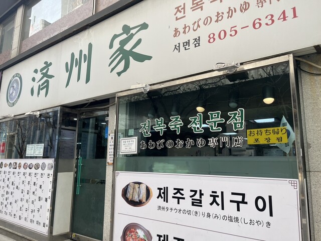 ◆韓国 釜山 済州家 (西面店) アワビ粥&ウニスープ◆