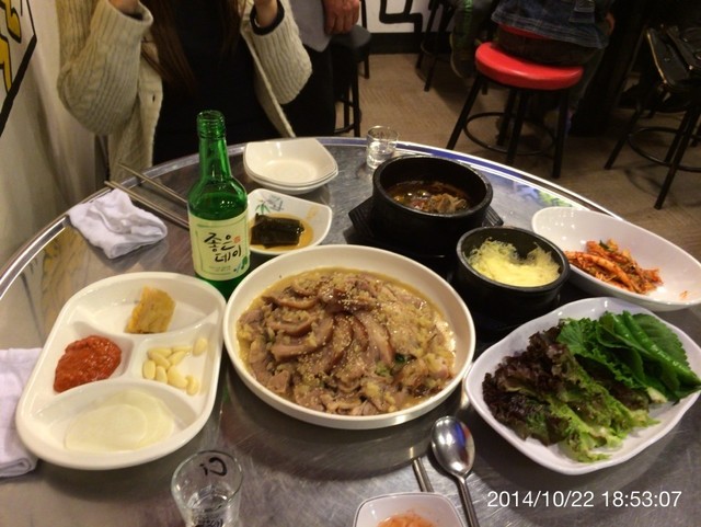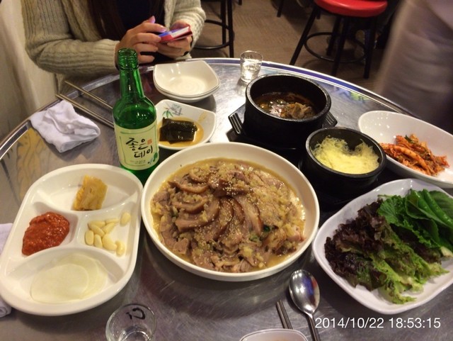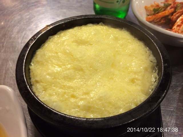 冷たい豚足に冷たい焼酎だと寒いので、温かいケランチム(土鍋で作った巨大茶わん蒸し)や、アツアツのスープで口を整えます。