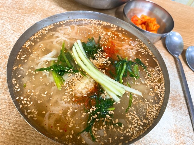 珍しい冷やしカルグクスが食べられるカルグクスの名店。