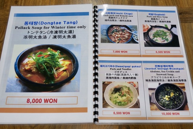 店名に冠している「コギククス」(6500₩)は、コギは「肉」、ククスは「手打ち麺」で、朝鮮半島の南にある済州島名物のあっさりした豚骨スープの肉入り麺料理のことを指す。