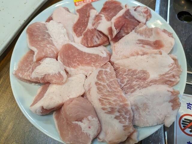 ここのサムギョプサルは韓国産の豚を使っとって、熟成させています。