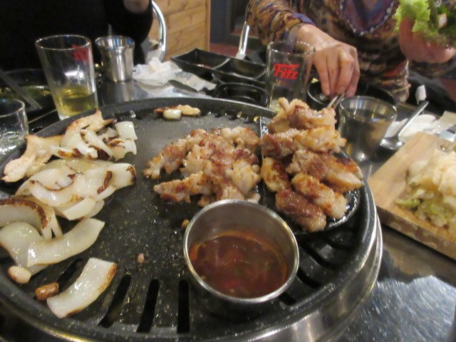 メニューの中から選んでくれたのはサムギョプサル400g30000ウオン、此れを7人で食べれる位の量を考えて注文してくれました。