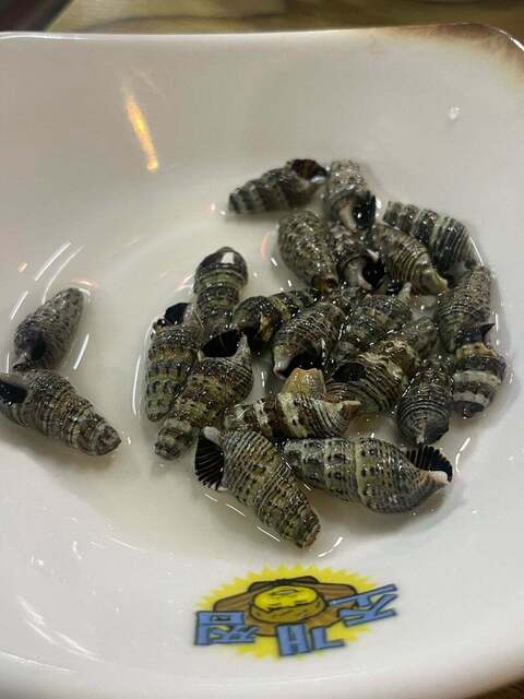 オーダーすると、サラダと小さな茹で巻貝が。これ、チューチューして食べるんですけど、中身が全然出て来ない笑。