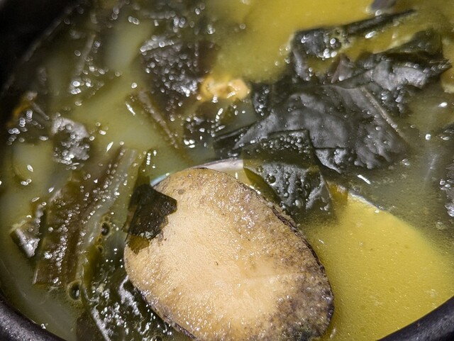 こちらは姫アワビが入ったワカメスープ。磯の香りがプンプンでプンプンプサンなのですが、不味くはないが美味しくも無い。どうしてこの料理が市民権を得るのか不思議です。