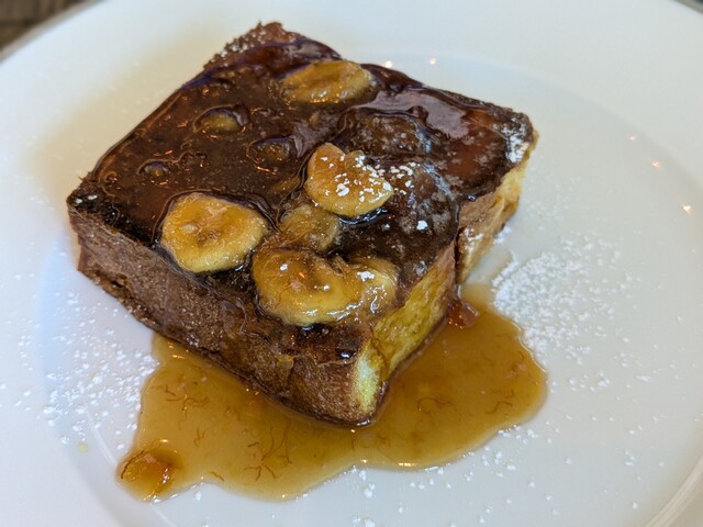 フレンチトーストはトーストというよりもケーキといった表現がピッタリで、密度のある生地に濃厚なバナナな甘味が記憶に残りました。私はパンケーキやフレンチトーストなどの単純な小麦粉系の食べ物をそれほど好まないのですが、当店のそれらは中々に美味しかった。