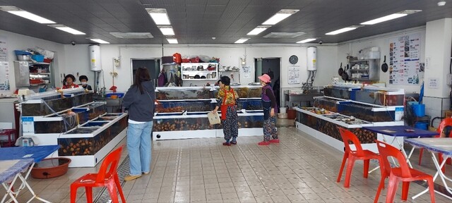 小綺麗な建物になってはいるものの、海女さんのエネルギーはすごいw