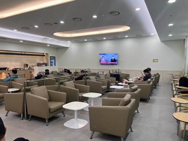 釜山空港の9番ゲート近くにあるラウンジが混雑してきたため、KALラウンジに移動しました。こちらはプライオリティーカードに加えて特定の搭乗券が必要なため、利用者が少なく、静かな空間で旅の最後をゆったりと楽しむことができました。