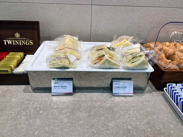 空港ラウンジで提供されるサンドイッチとしては、しっかりとしたボリューム感がありました。ハムの塩気と卵のまろやかさが程よくマッチしていて、満足感のある一品。シンプルながら旅の締めにちょうど良い軽食でした。