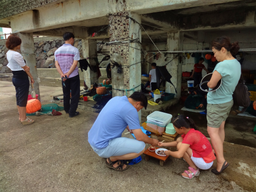 近くにいたご家族が、獲れたての魚介を買って、その場でしょうゆかけて召し上がってました。