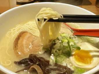 豚骨スープはマイルドで優しい。丁寧に作られているようだ。塩っぱくないのがありがたい。