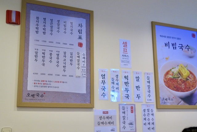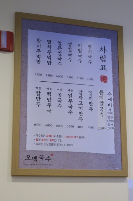 仁川(インチョン)の芸術会館駅(Art Center)近くの食堂「오백국수」(オベククッス)。オベクは数字の500、クッスは麺の意味。「ミョルチクッス(멸치국수)」(4000ウォン)という片口鰯の煮干しダシの汁麺が名物のチェーン店。