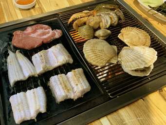 海鮮のビュッフェスタイルのBBQが地下鉄 仁川大学前駅そばにあるというので行ってみることにした。