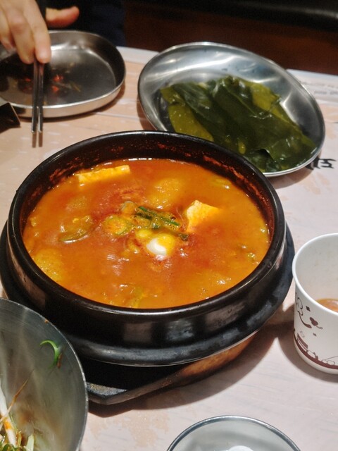 娘と妻はマッチャン好きなのですが、私はサムギョプサルとデジカルビの方が好きだな。コチュジャンスープは初めてでしたが甘辛辛で、ジャガイモも入っていて美味しかったです。