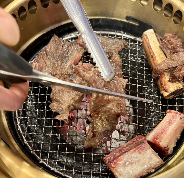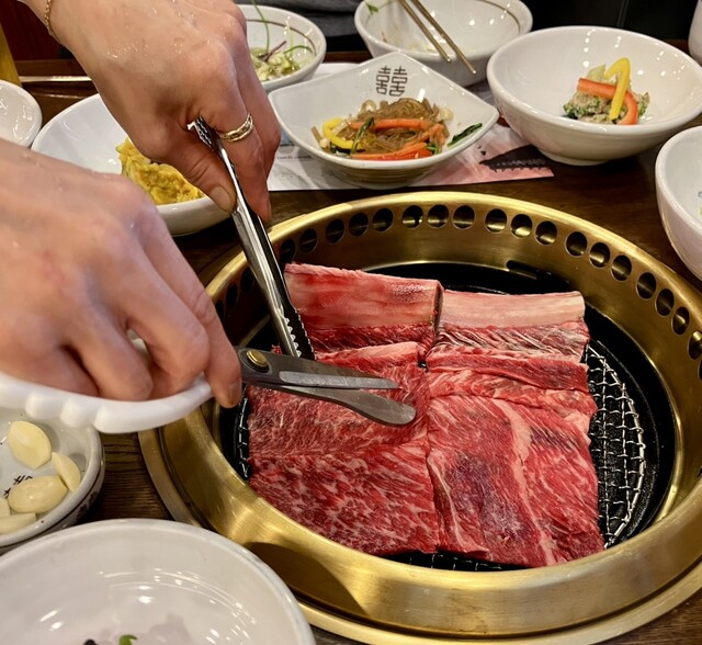 カルビは女性店員が焼いて♨️切ってサーブ〽️