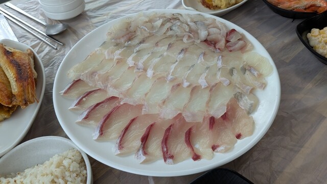 刺身は、ヒラメと鯛、ハマチを捌いてもらった...
