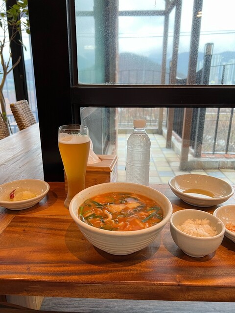 激辛の山椒カルグスクを前回同様、まろやかヴァイゼンで中和しながら頂きました。窓の外に広がる紅葉を眺めながらいただきました。夏場だと食べ終わった後、汗だくになっていましたが、今回は気候のためかそれほどで...
