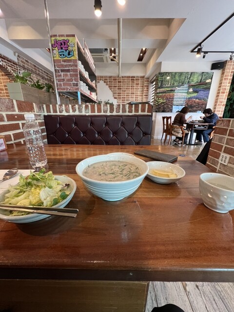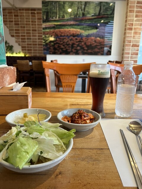 日本では経験したことのないスープと麺。さっぱりしているけど存在感のある一品です。ここのスープは飲み干した方が健康に良さそうな感じです☺︎ フレッシュサラダとキムチもお代わり自由で最高です。