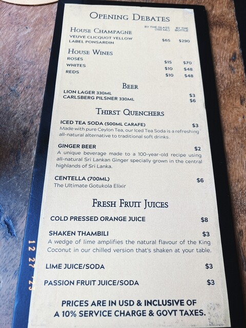 ソフトドリンクは、他のスリランカのレストランと同様、スリランカらしい魅力的なものが多種類。値段もスリランカレストラン価格だった。