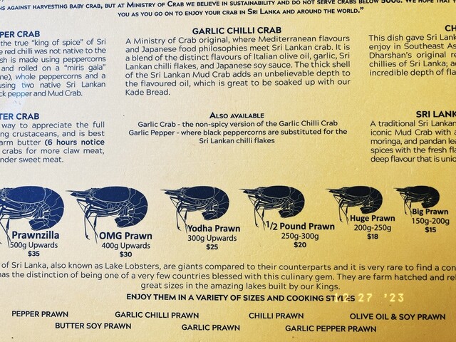 蟹もえびもグラム数が上がるごとに値段が上がる。大きくなるほどおいしいのだろうか、それとも大味になって味は落ちるのだろうか??