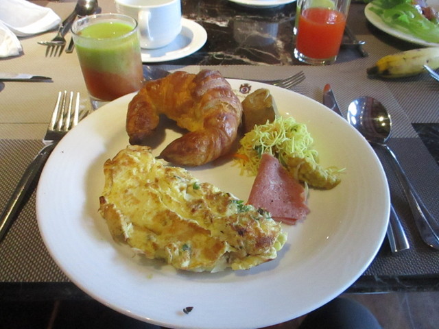 朝食ビュッフェは、スリランカ風のカレーなどが目につきましたが、概ねイギリス風のブレックファーストのような感じのメニューでした。