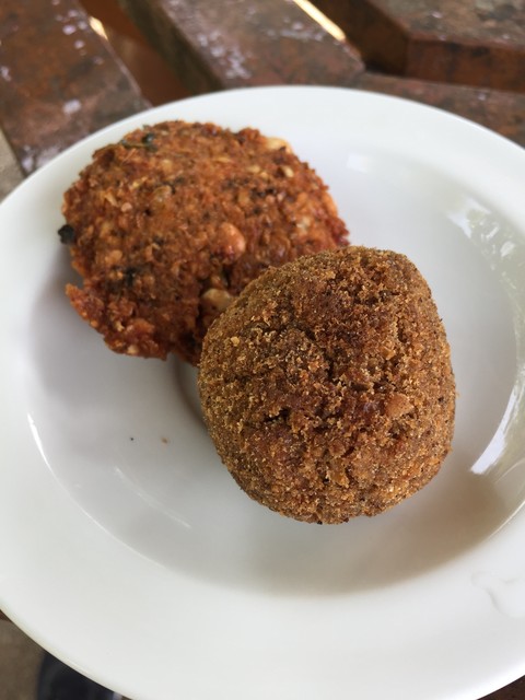 揚げ物は未熟なジャックフルーツのカトゥレットと、豆コロッケ的なパリップワデ。