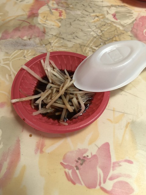 熱々スープジュワーとまではいかないが、このお値段で9個も食べれるなんて超お得!添え付けの醤油と酢を刻み生姜に入れてタレとしていただく!