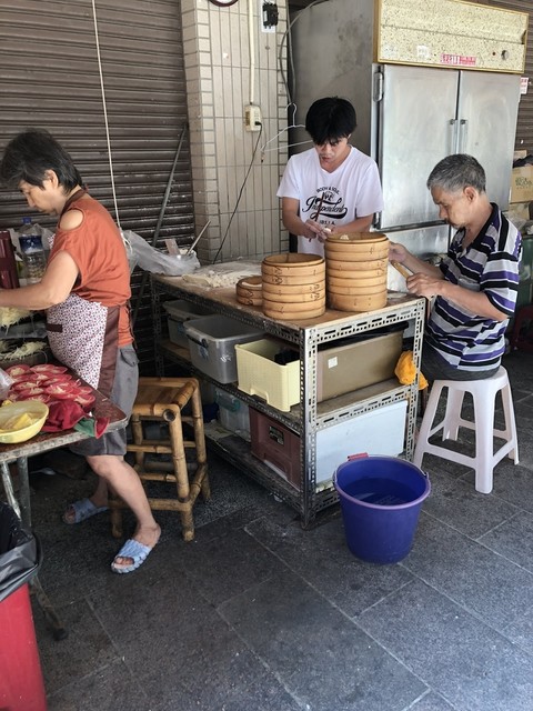 この日は日曜日なので高雄市観光に決定!地下鉄を使って鹽埕埔の駅で下車し、歩いて永和小籠湯包さんに伺った。地図を頼りにお店に向かうとお店の看板らしきものを発見!シャッターが閉まっているので閉店だと思いきや、店舗は屋台になっており、イートインスペースに机とイスが置かれている。
