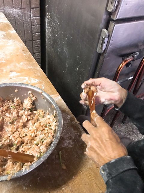 近づいてみるとその軒先で器用に小籠包を手で包む老人の姿が。