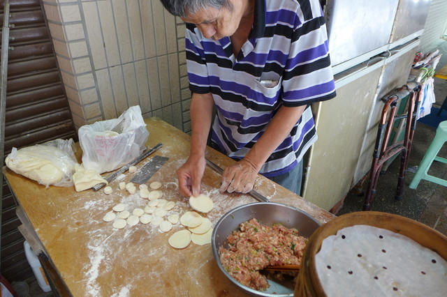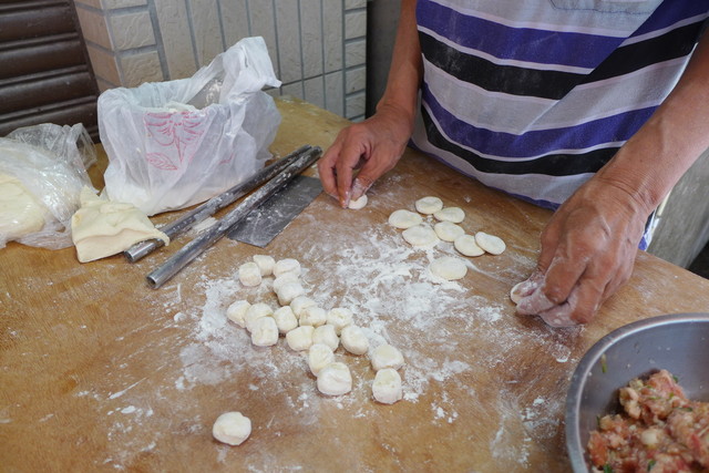 お昼前、お店の前に来てみると、老練なご主人が、小籠包作りの真っ最中。