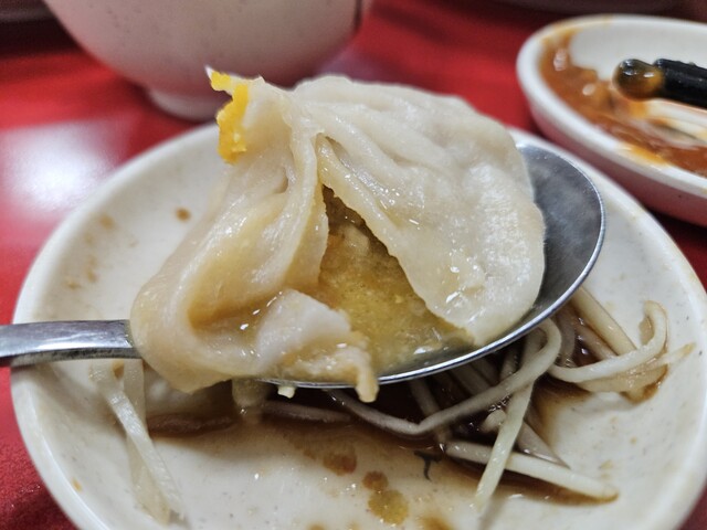 カニみそ小籠包はちょっと期待外れ。カニみそ感もあまり感じず、小籠包らしいジューシー感も無かったので、ノーマルの小籠包をもう一つ頼むか、ワンタンか麺にすれば良かったかなと反省。