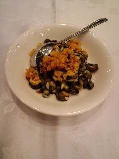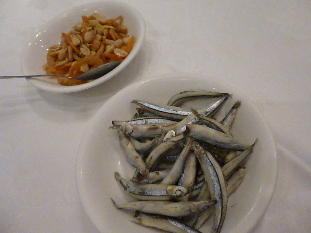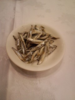 前菜貝とにんにく等の炒め 父が嫌いだったため次の小魚に変えた
