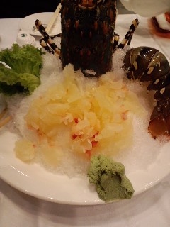 伊勢海老の刺身 台湾ってわさびをドカっと盛るんだよね