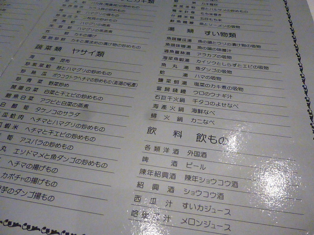 オーナーの出身である澎湖島の海産物を主に使ってる